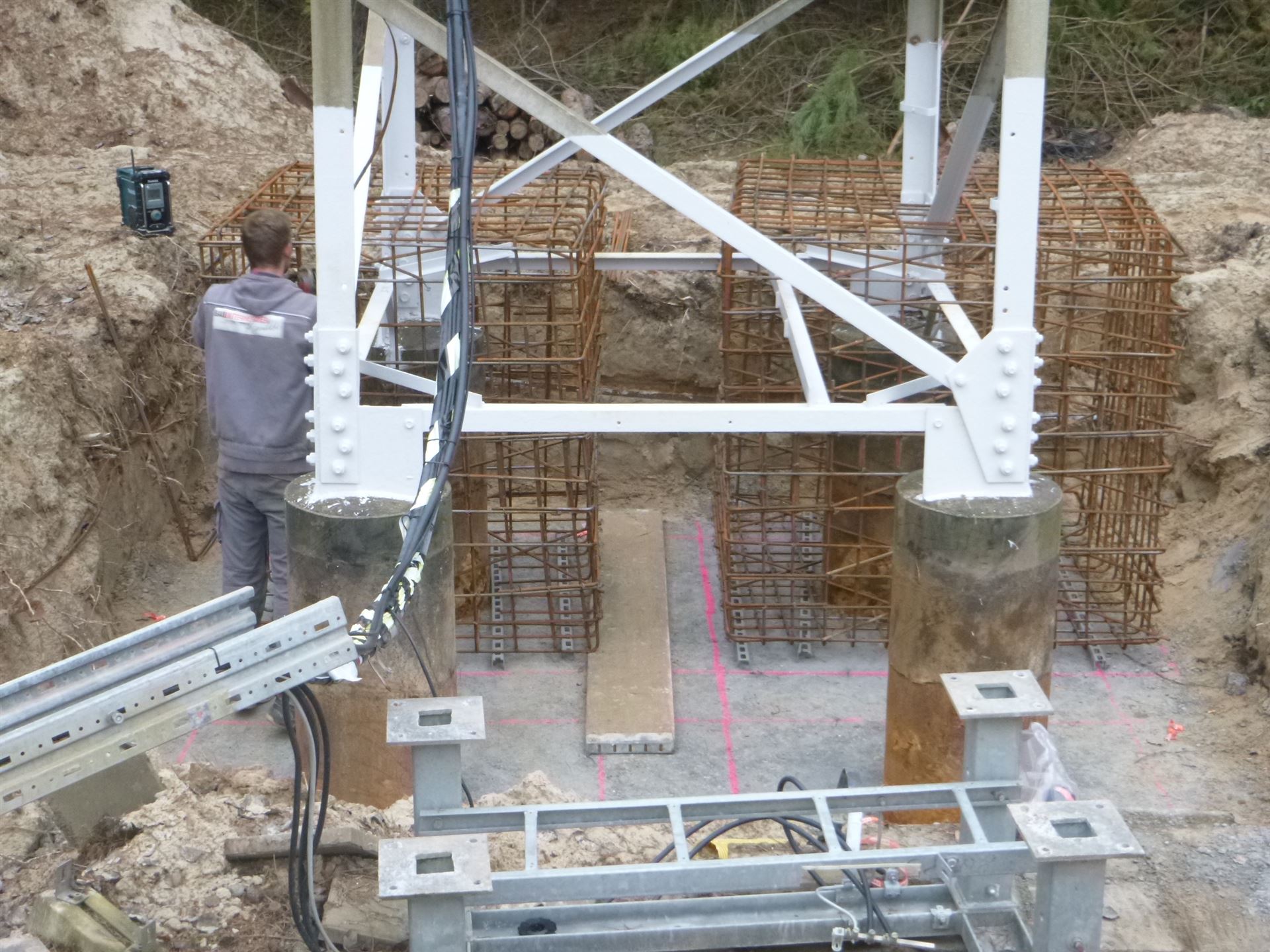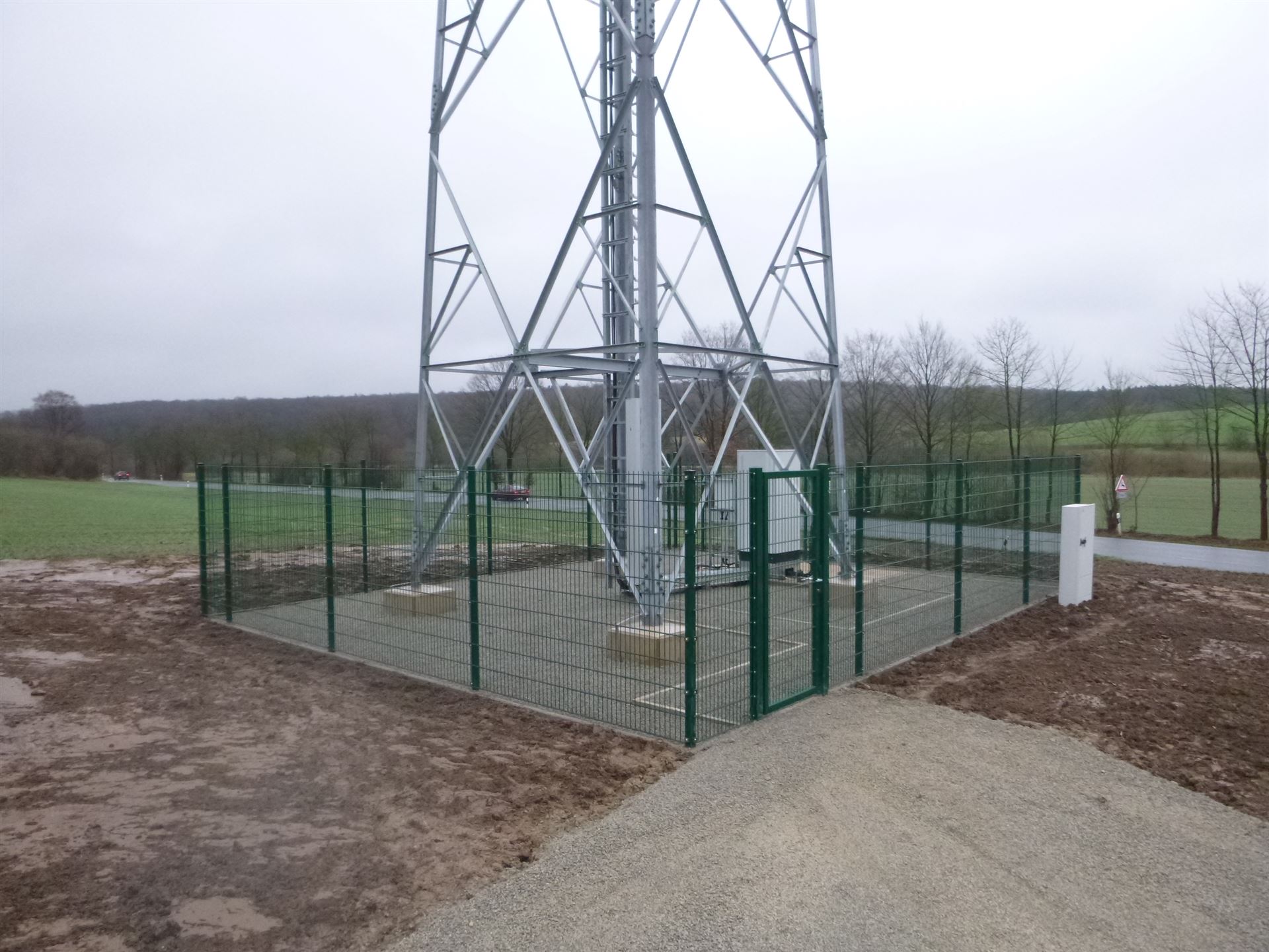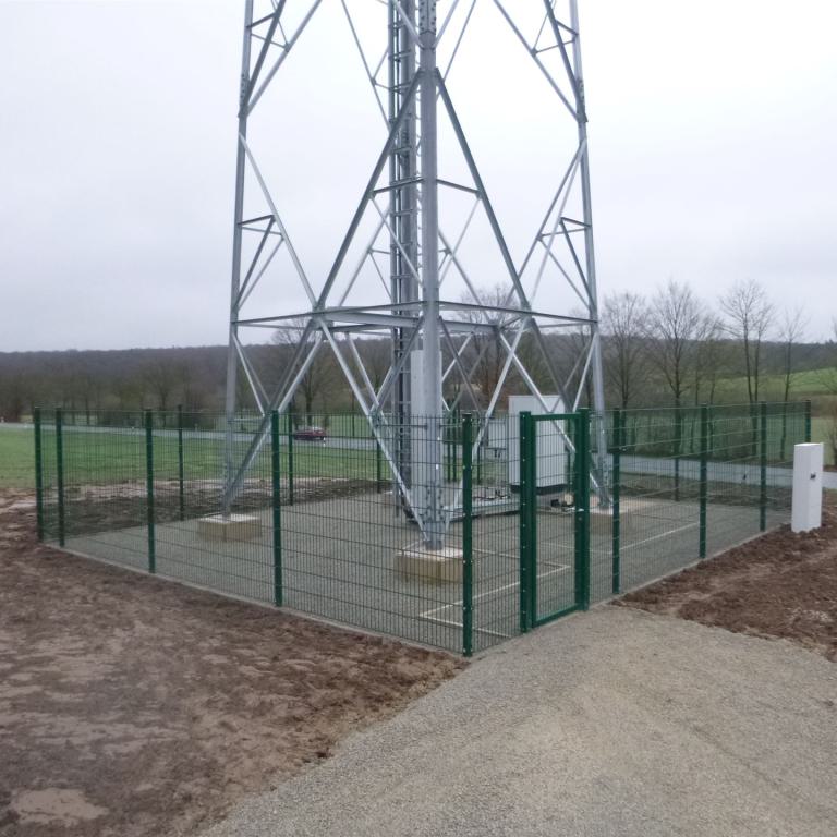 Funkmast mit Fundament und Umfriedung